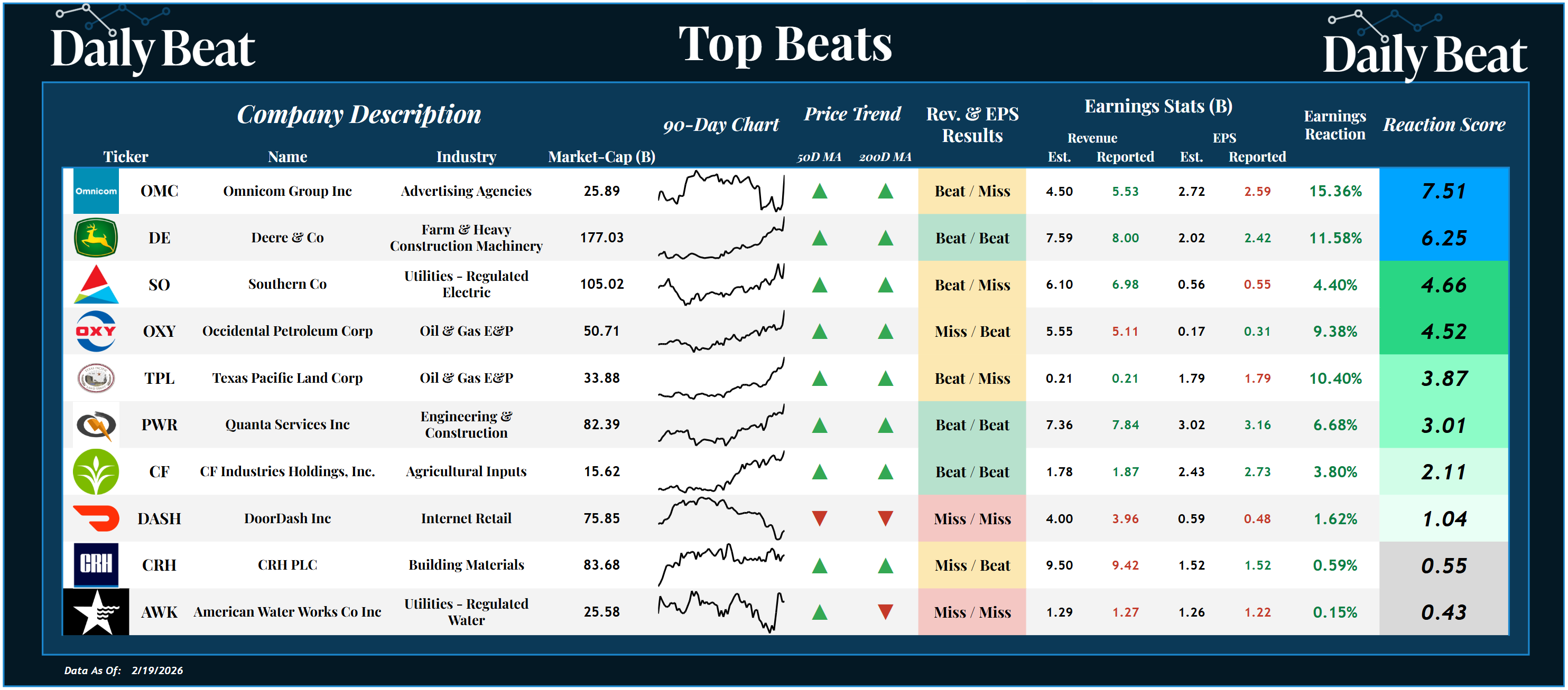 The big beats from Deere $DE, Southern Co. $SO, Occidental Petroleum $OXY, and Quanta Services $PWR also stood out to us.