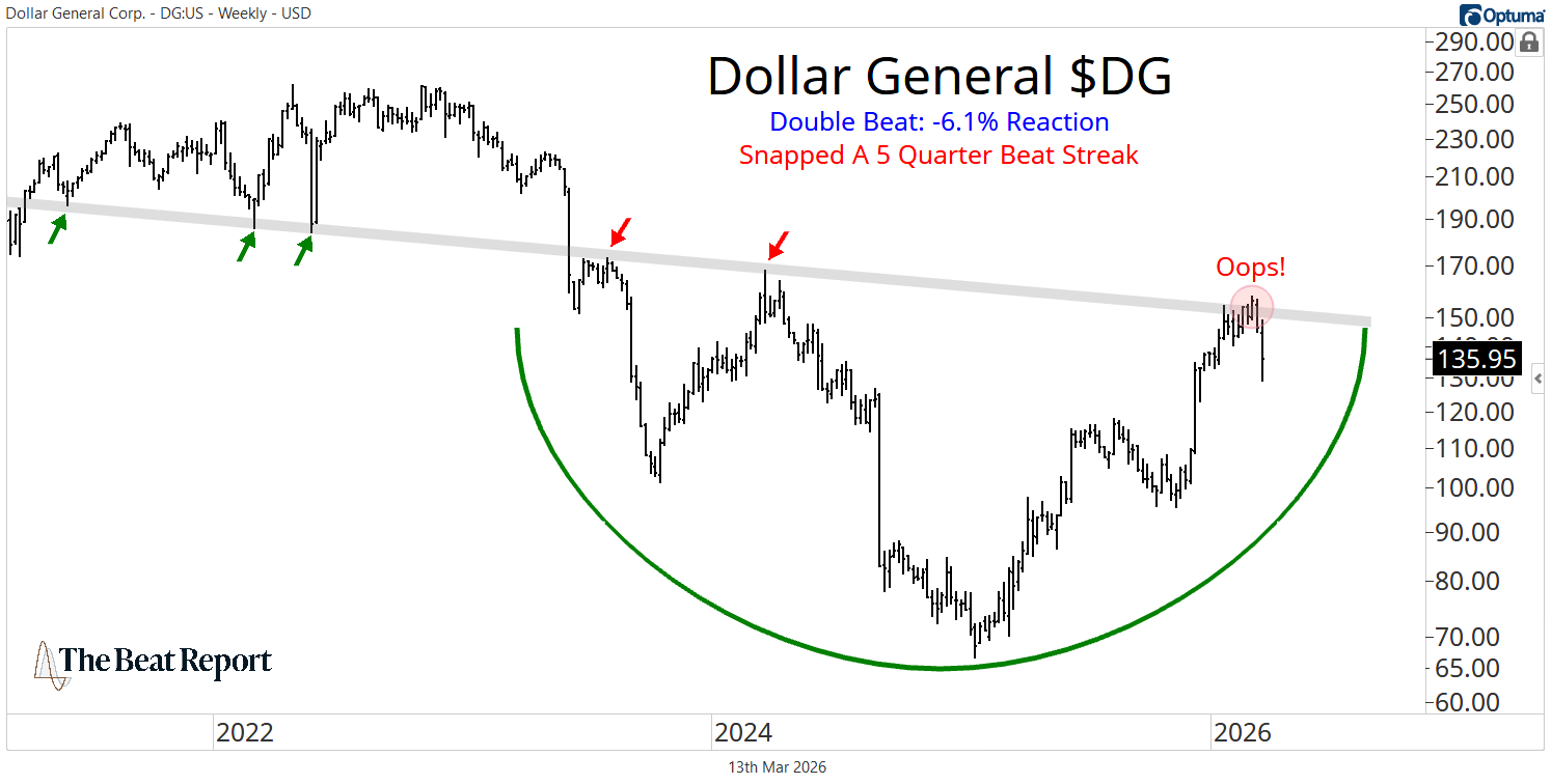 Dollar General had been rewarded for five consecutive earnings reports, which helped fuel a massive rally off the 2025 lows.