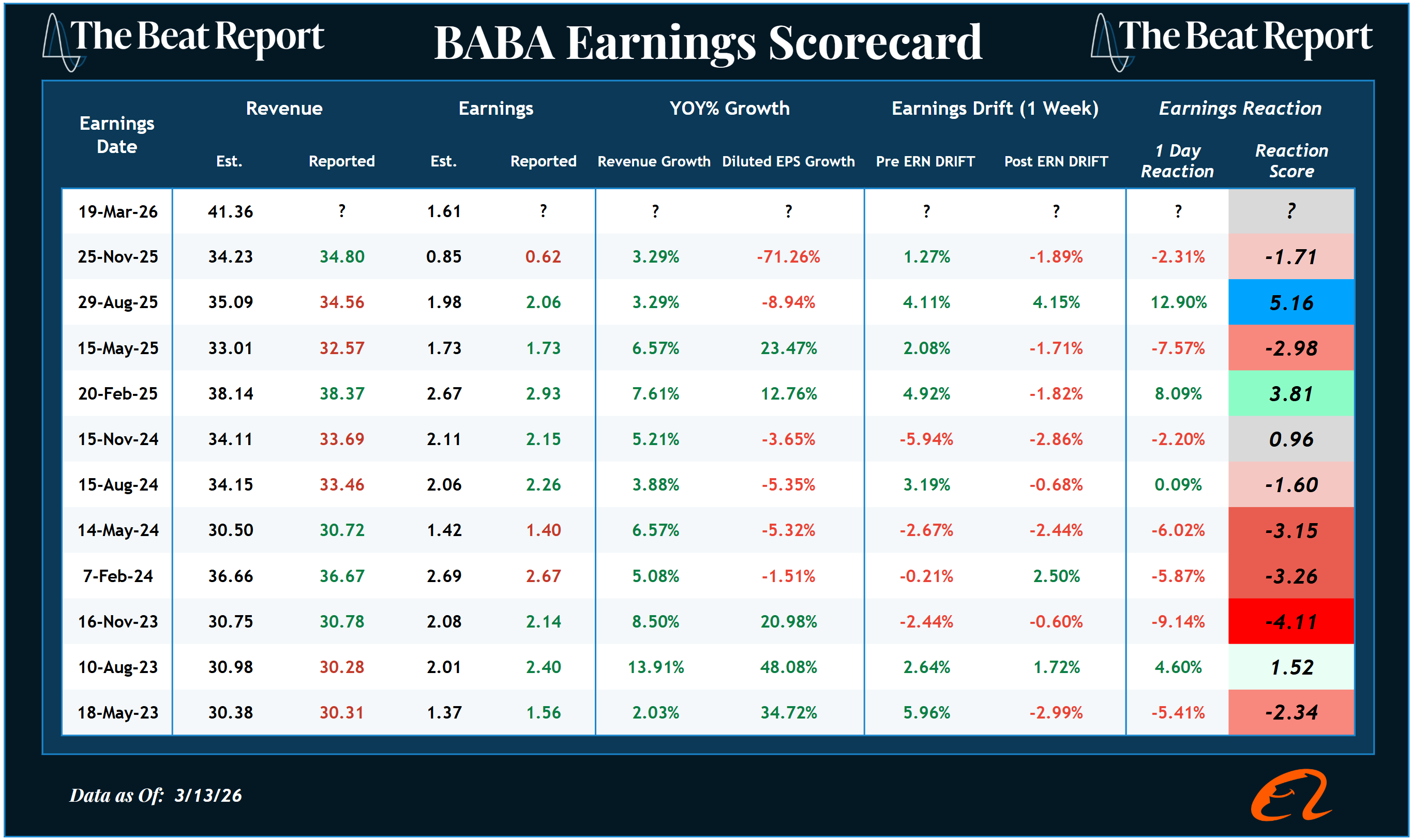 There isn’t a consistent pattern in Alibaba’s earnings reactions, but one trend stands out clearly: the persistent negative post-earnings drift.