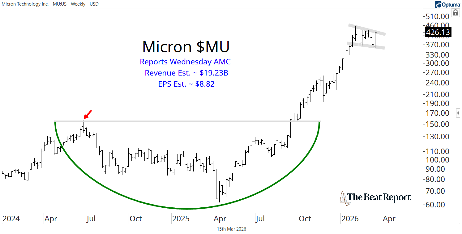 Heading into the report, Micron is pressing against the upper boundary of a multi-week coil. This comes after a historic +600% rally off the April low last year, making MU one of the strongest stocks in the entire market.