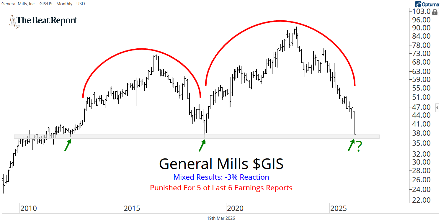On the other end of the spectrum, General Mills $GIS posted mixed results and fell nearly -3%, earning the worst reaction score of the group.