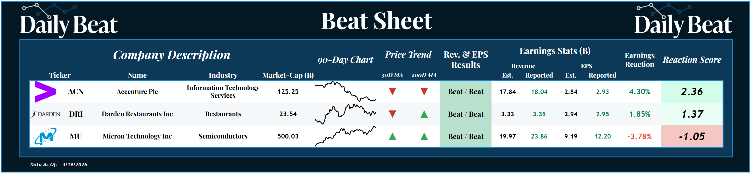 Accenture $ACN delivered a clean double beat and rallied +4.3%, posting the highest reaction score on the board.
