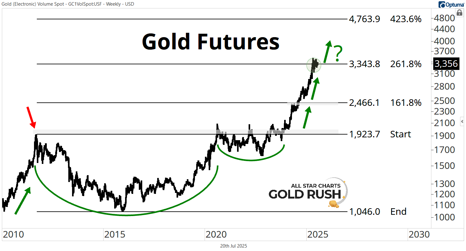 Many have been calling for a top in the shiny yellow metal. However, we think that's complete nonsense, and this looks more like a launchpad than a top.