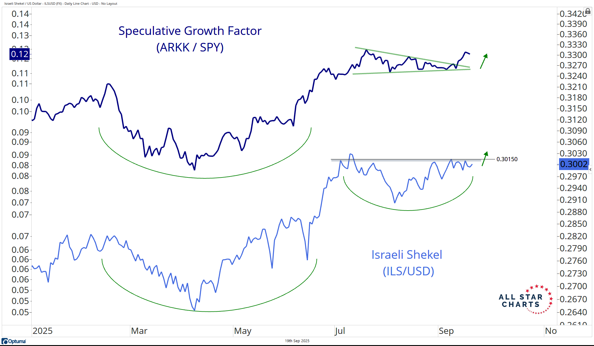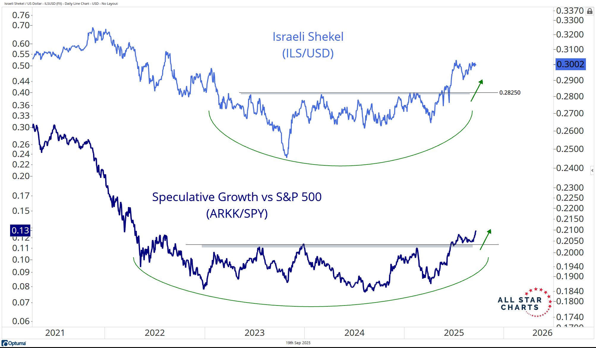 We were early to point this out when the Shekel broke out ahead of ARKK/SPY months in advance.
