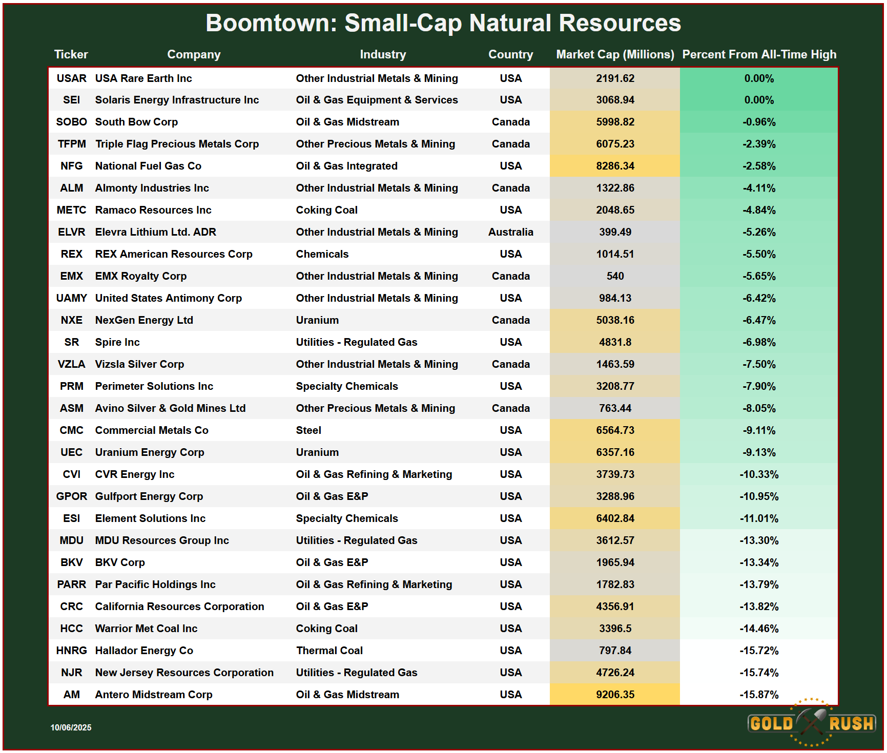 In this report, we are specifically looking for companies between $300 Million to $10 Billion that fall within the category of Minerals, Metals, Energy and Agriculture.