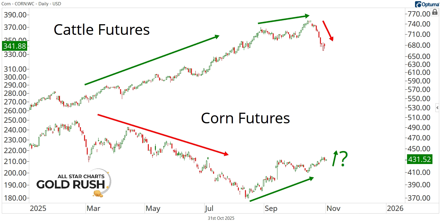 While Cattle futures have started to break lower, Corn futures are quietly stabilizing and turning higher.