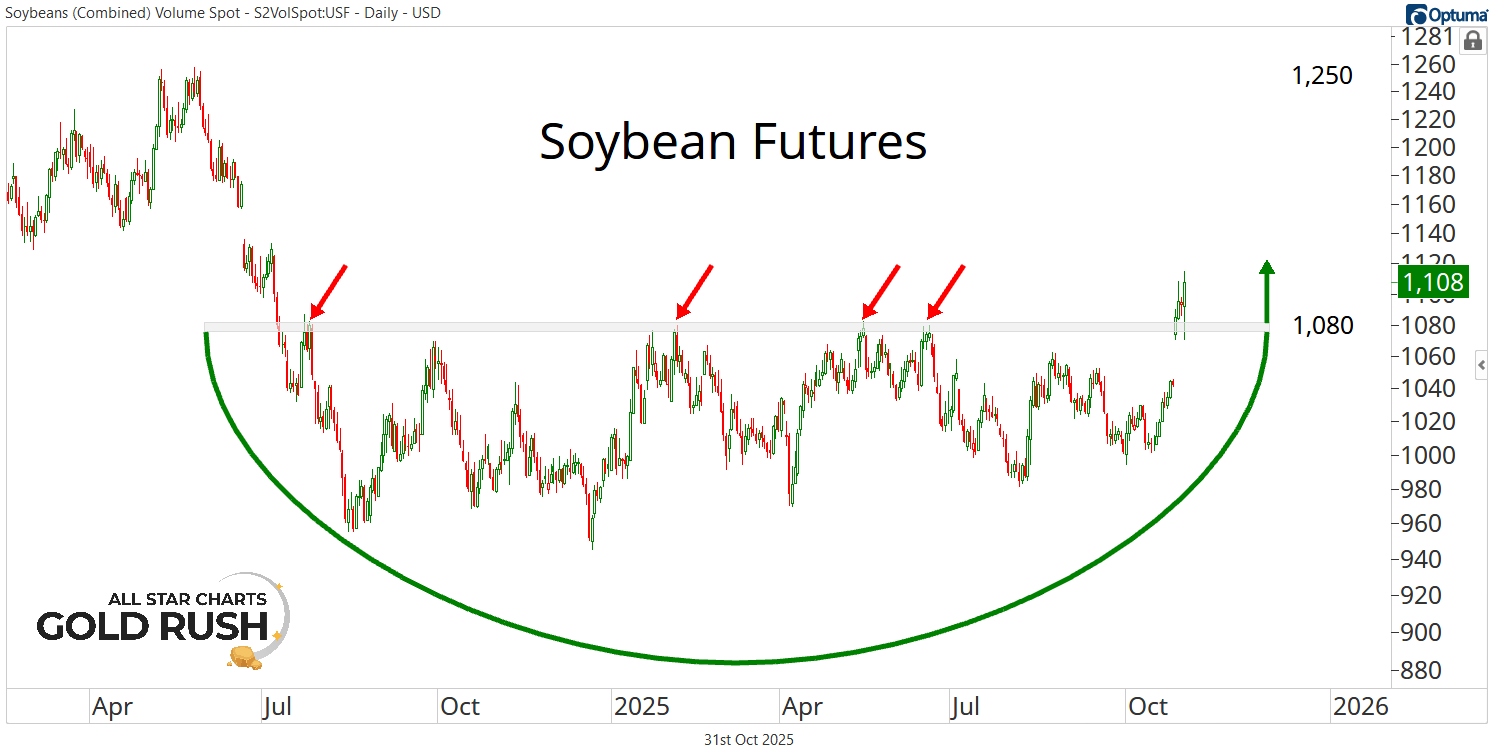 After carving out a textbook bearish-to-bullish reversal pattern, Soybean futures are decisively clearing a significant resistance zone that has capped every rally since early 2024.