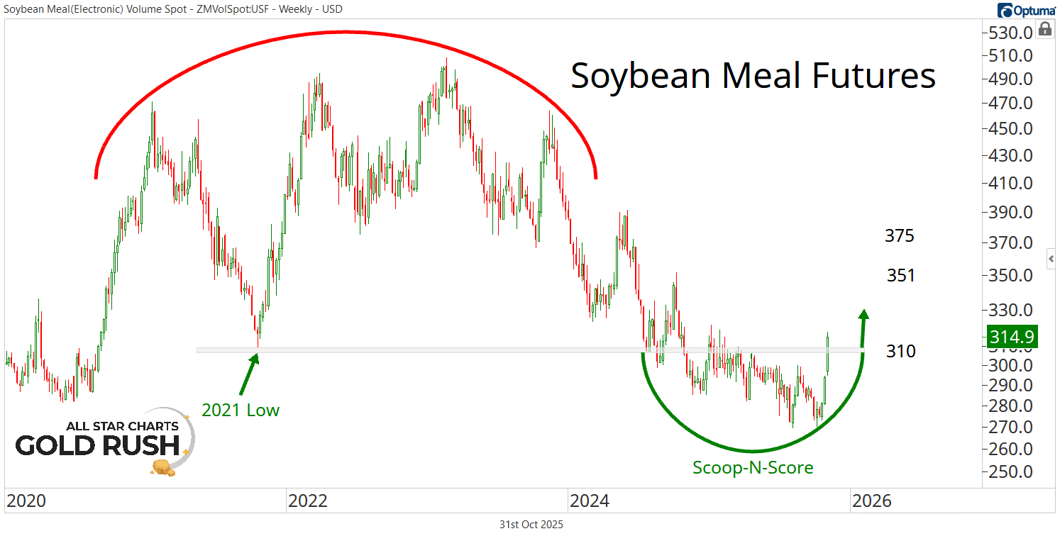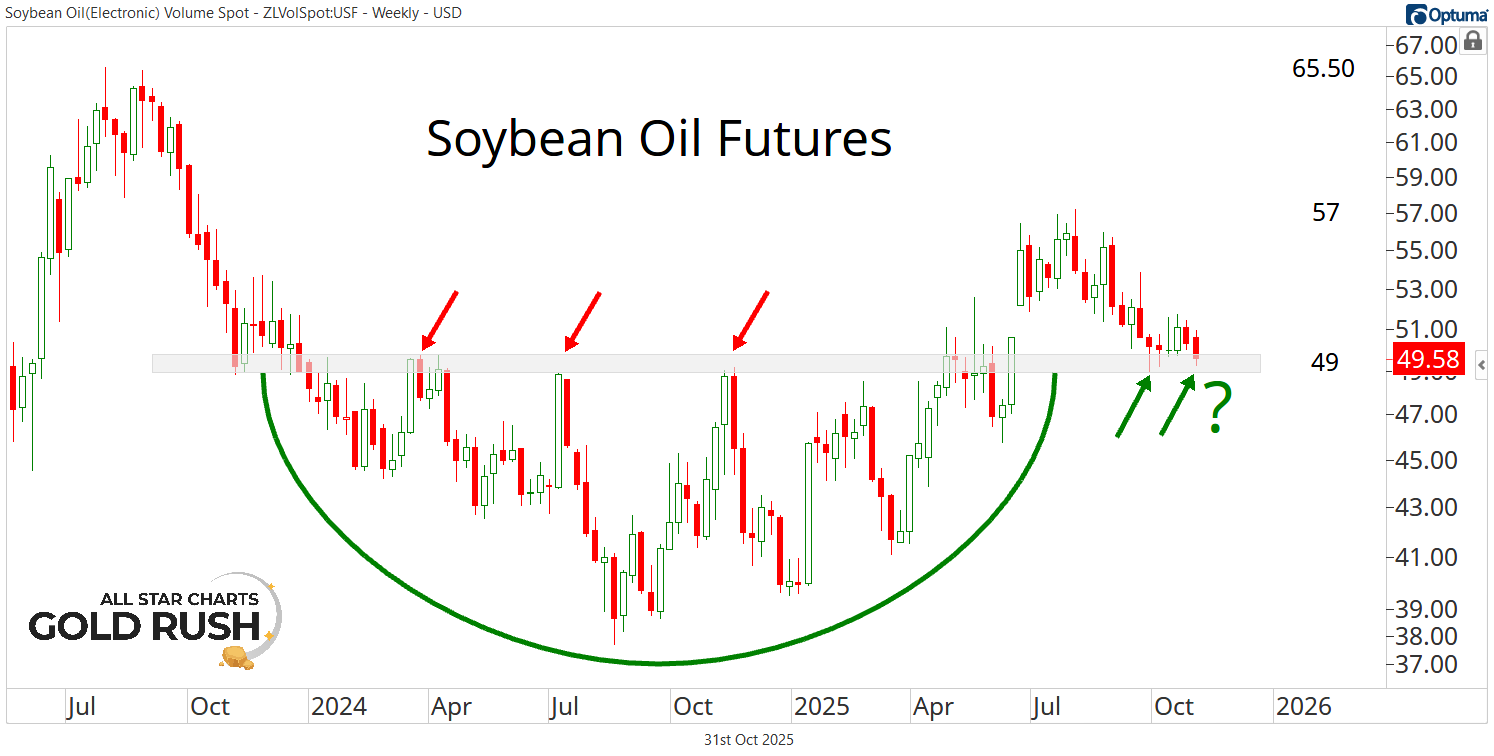 As you can see, Soybean Oil completed its base earlier this year, but has returned to the breakout level.