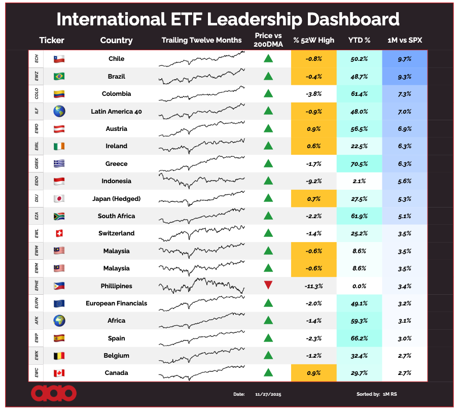 The strongest markets in the world this year weren’t the U.S. mega-caps — it was Chile, Brazil, Colombia, Greece, South Africa, Austria, Ireland, South Korea, and the LatAm complex as a whole.