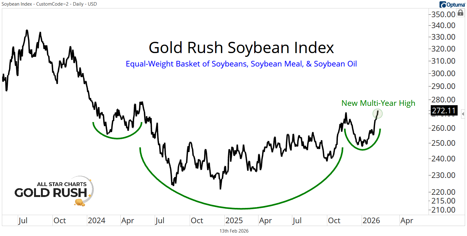 Our Gold Rush Soybean Index is ripping to new multi-year highs and resolving higher from a textbook multi-year bearish-to-bullish reversal pattern.