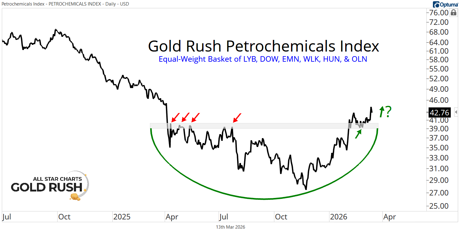 The Gold Rush Petrochemicals Index is now resolving higher from a prolonged base and entering what we believe could be the early stages of a brand-new primary uptrend.