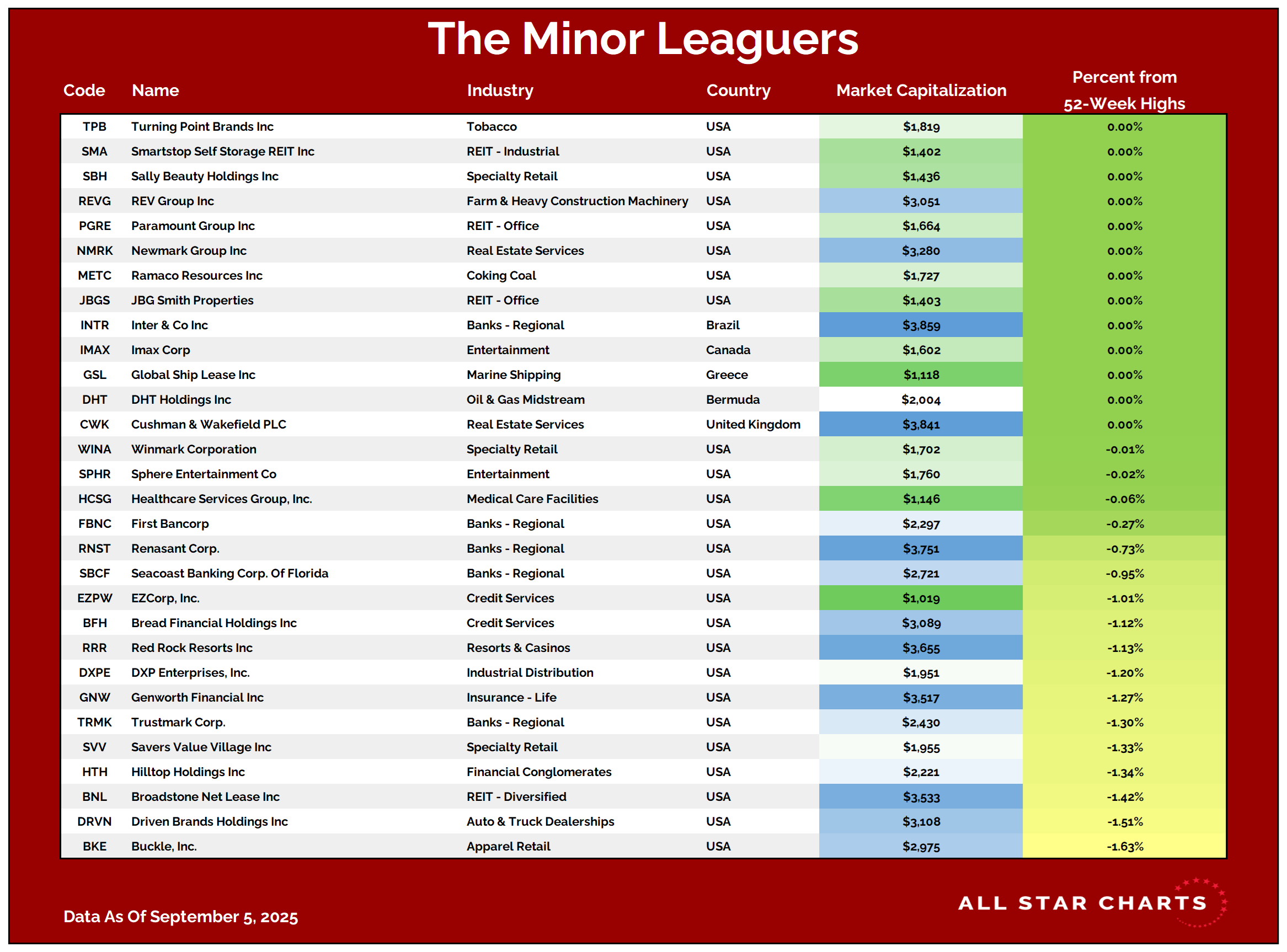 Nowadays, to make the cut for our Minor Leaguers list, a company must have a market cap between $1 and $4B.