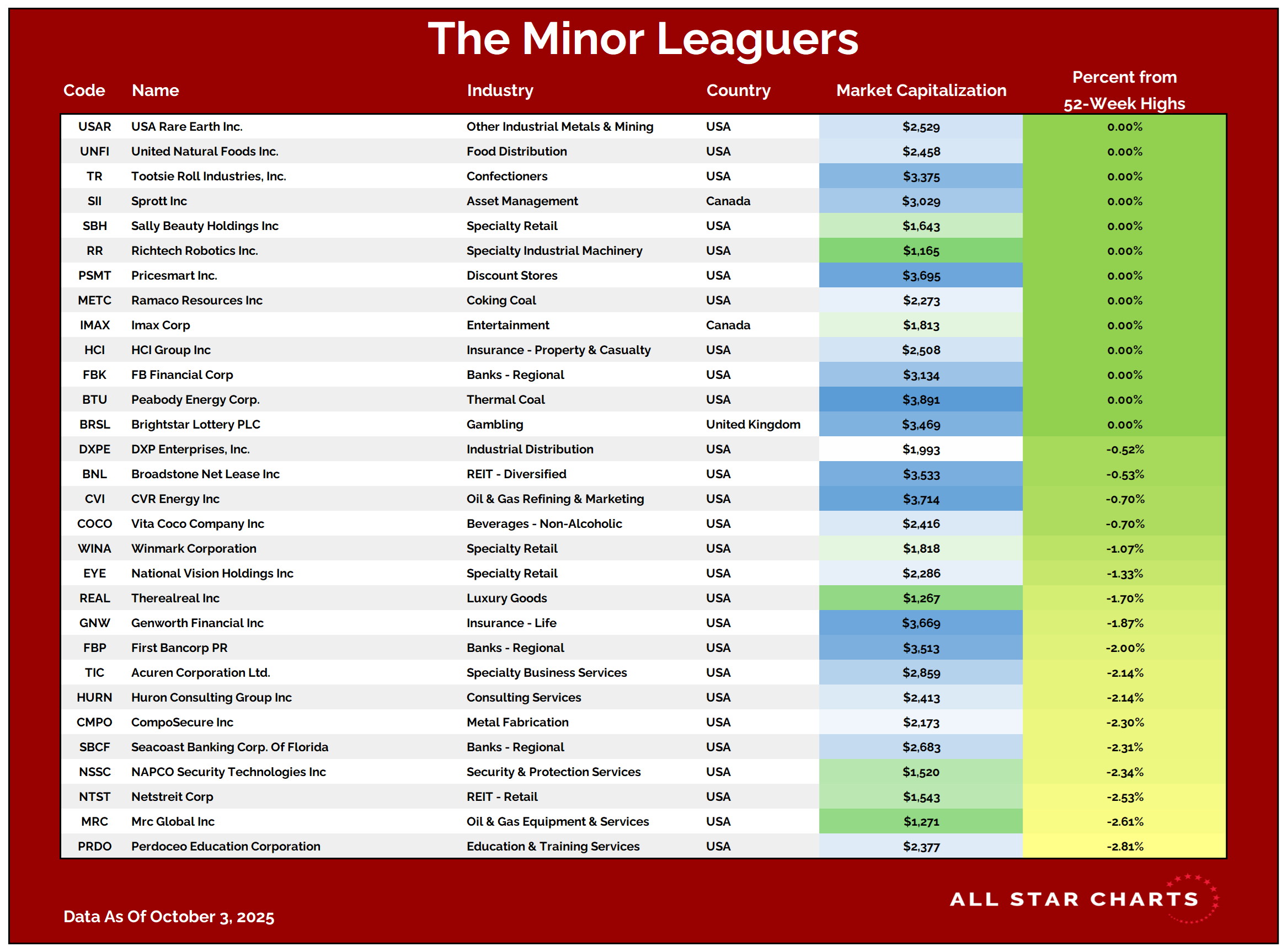 Nowadays, to make the cut for our Minor Leaguers list, a company must have a market cap between $1 and $4B.
