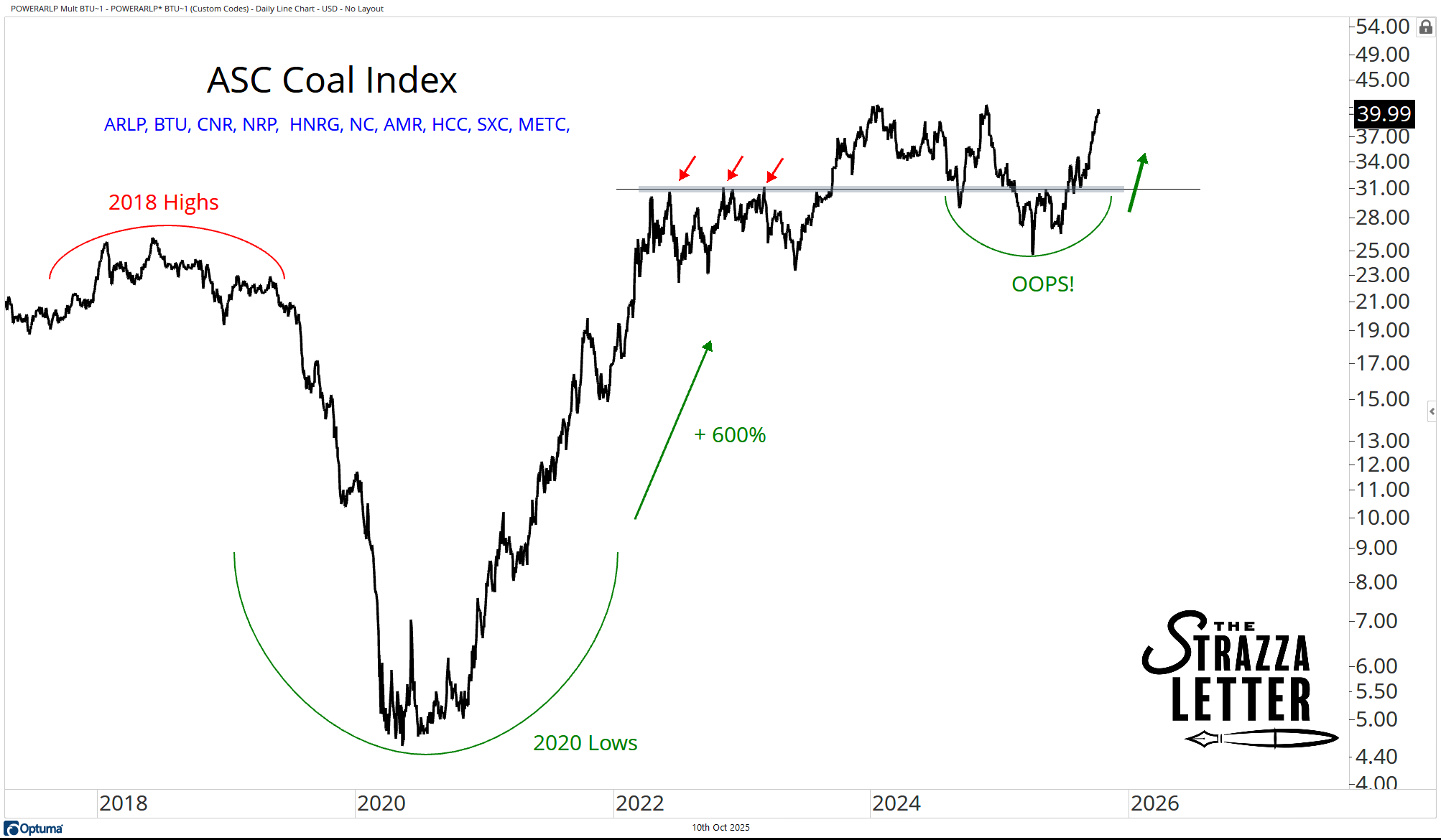 Here’s our custom ASC Coal Index, which has been screaming higher after failing to break down earlier this year:
