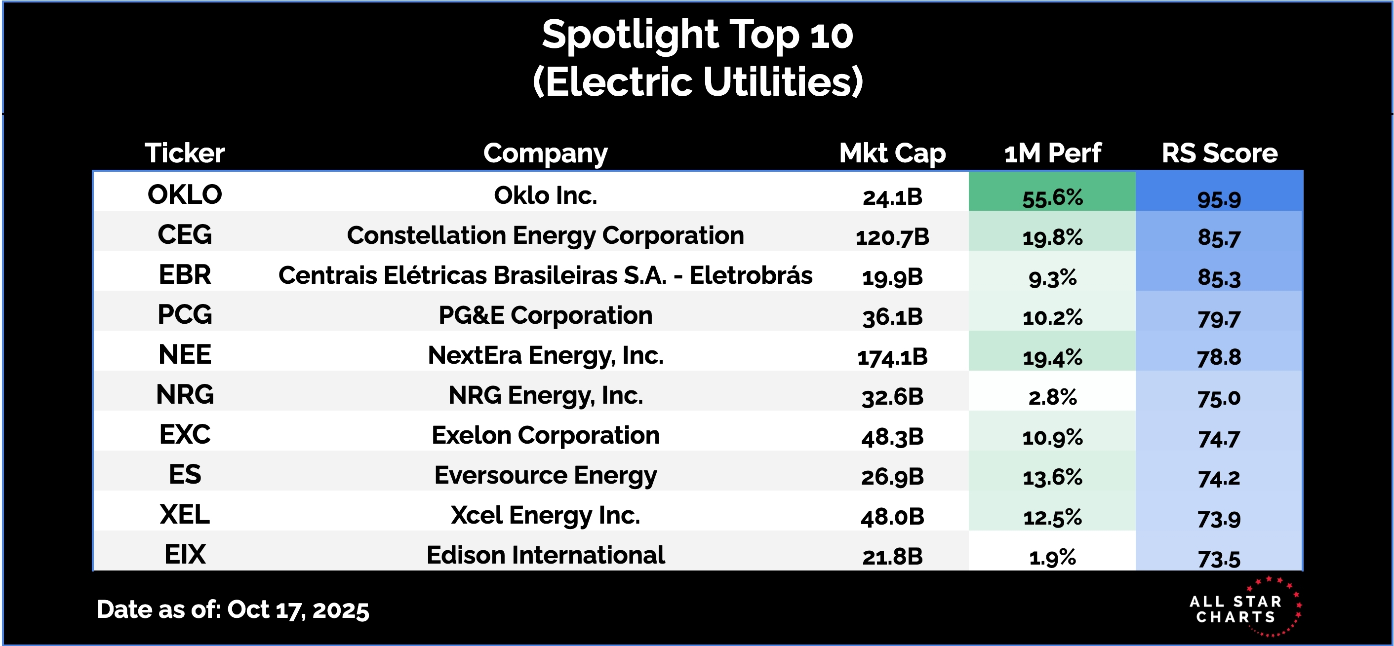 Here are the Top 10 names in the Electric Utilities subsector, ranked by relative strength.