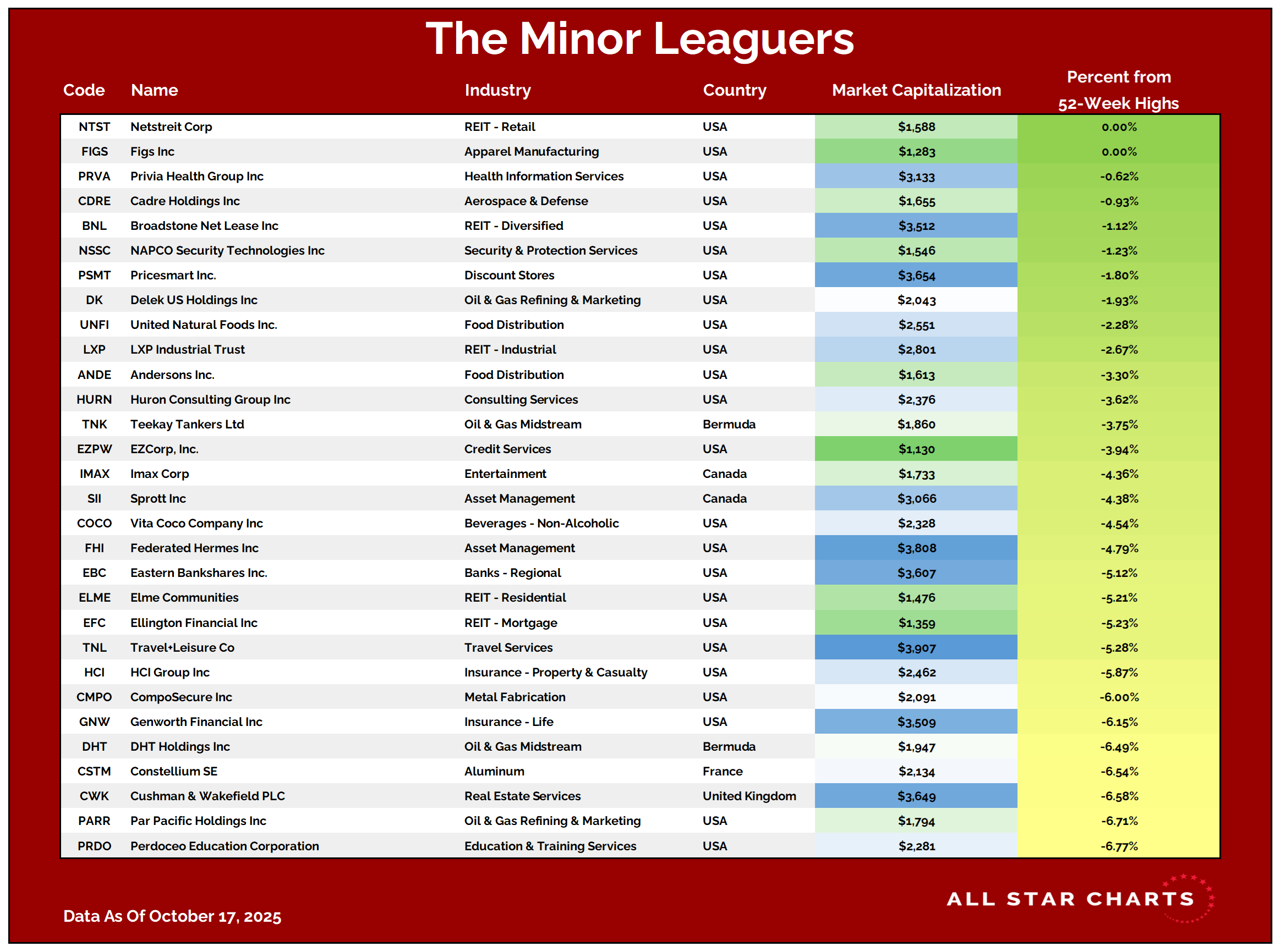 Nowadays, to make the cut for our Minor Leaguers list, a company must have a market cap between $1 and $4B.