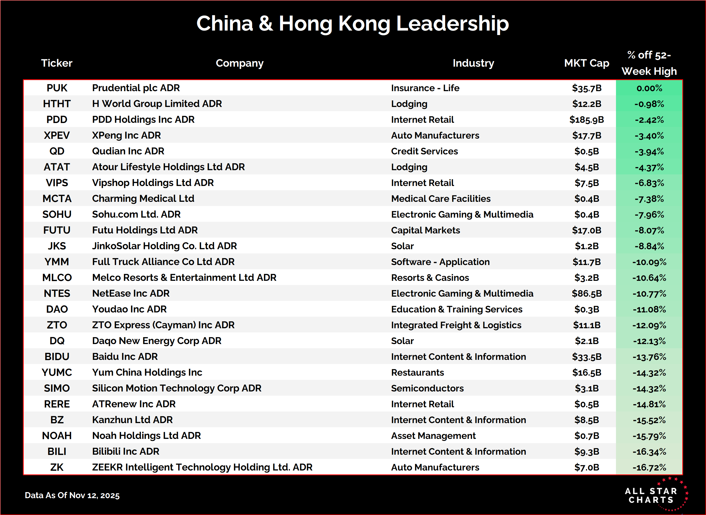 Here’s our China stock universe, which includes Hong Kong listings, sorted by proximity to new highs: