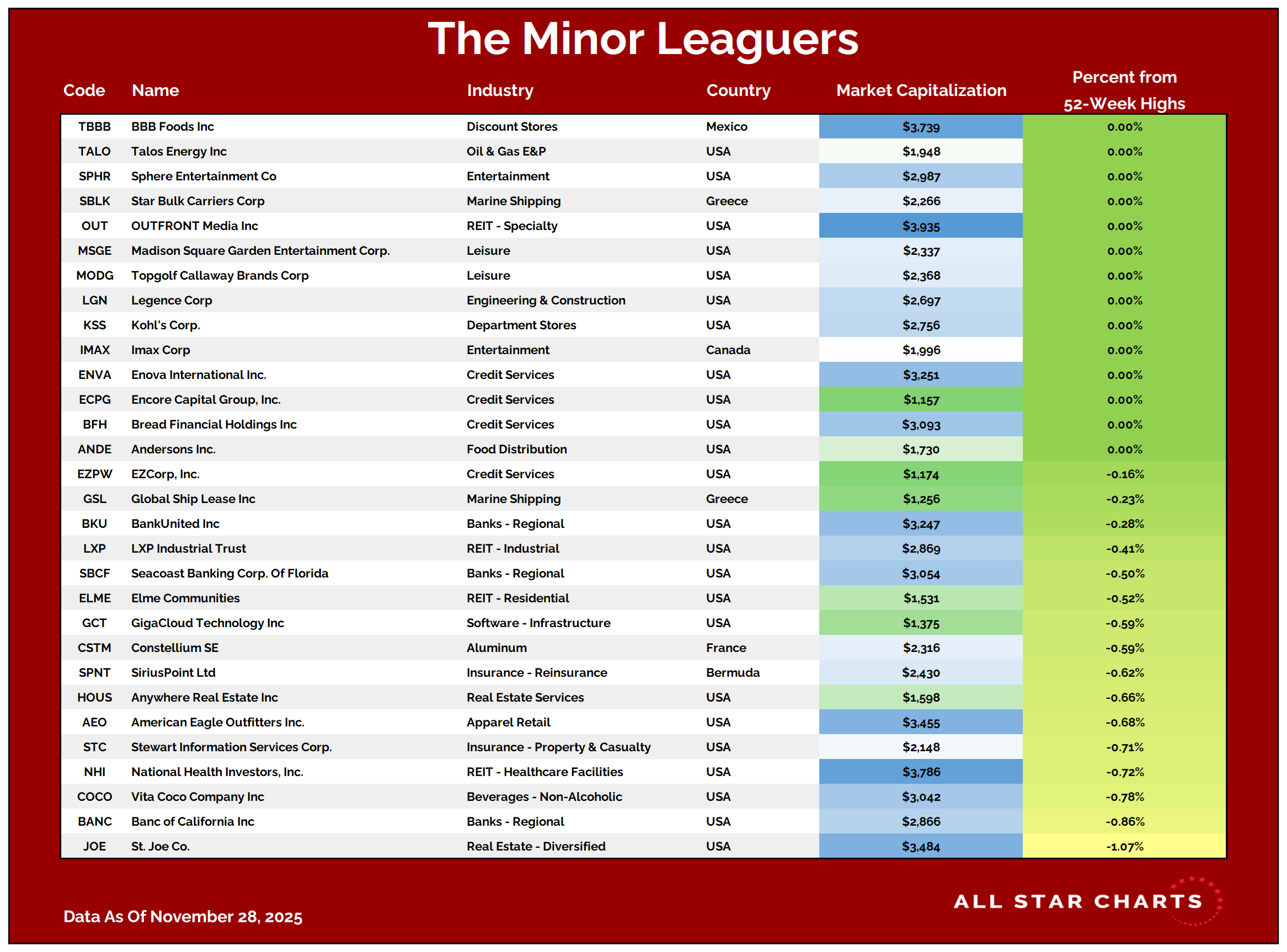 Nowadays, to make the cut for our Minor Leaguers list, a company must have a market cap between $1 and $4B.