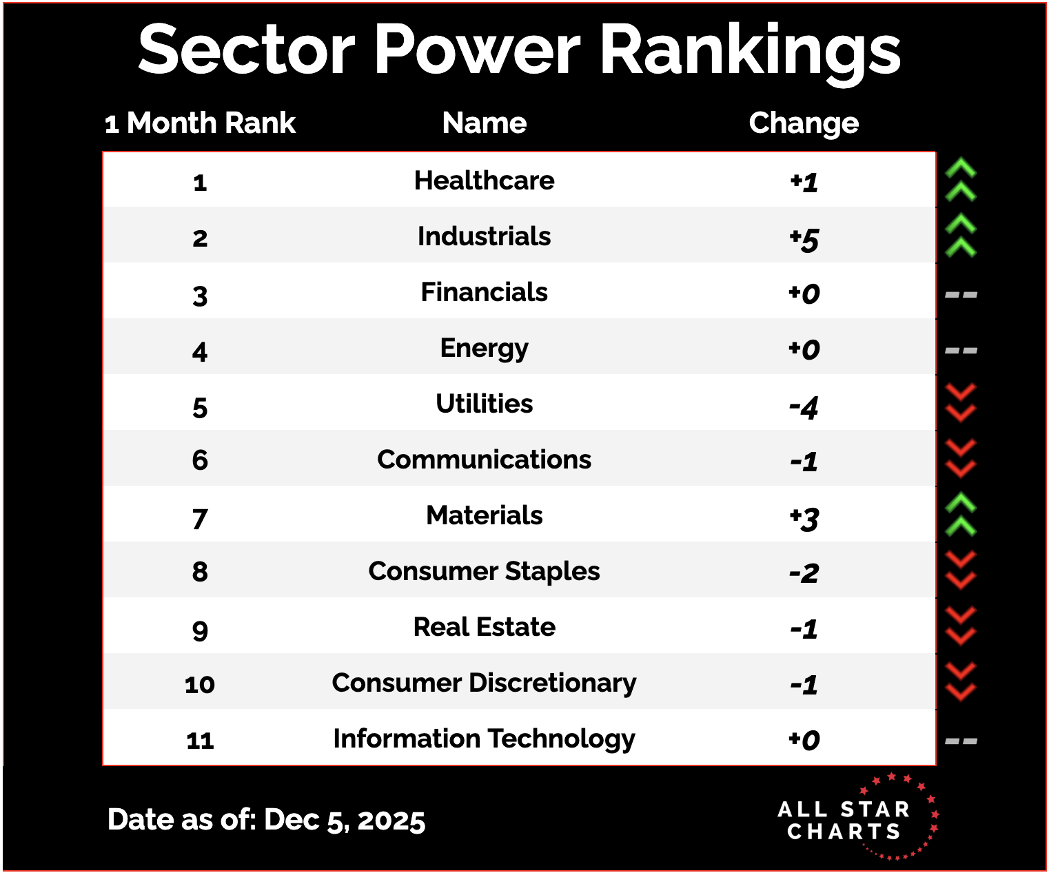 This week’s standout is Technology, which—despite sitting at the bottom of our sector rankings—is showing significant relative strength over the short-term.