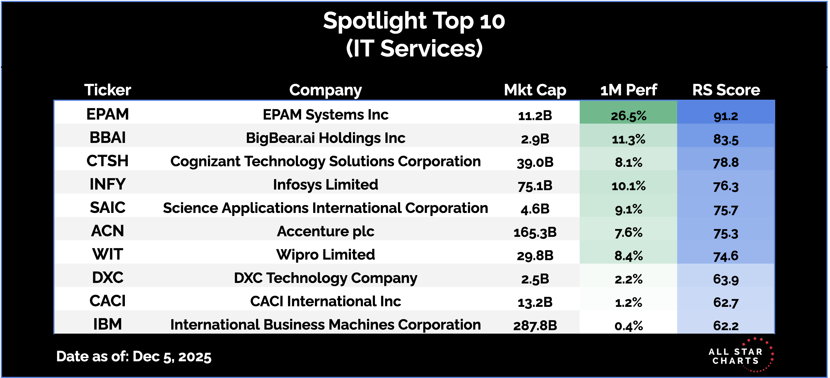 Here are the Top 10 names in the IT Services subsector, ranked by relative strength.