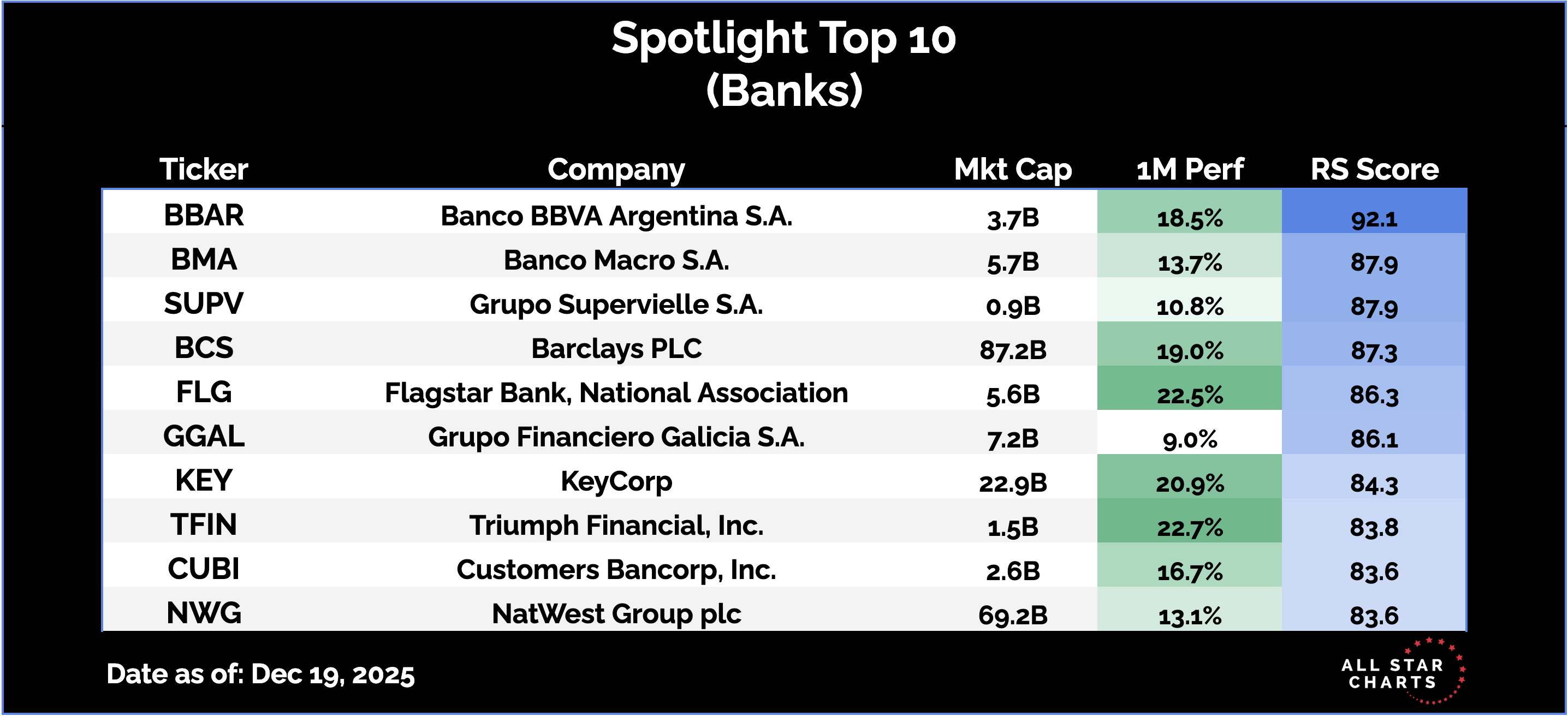 Here are the Top 10 names in the Banks subsector, ranked by relative strength.