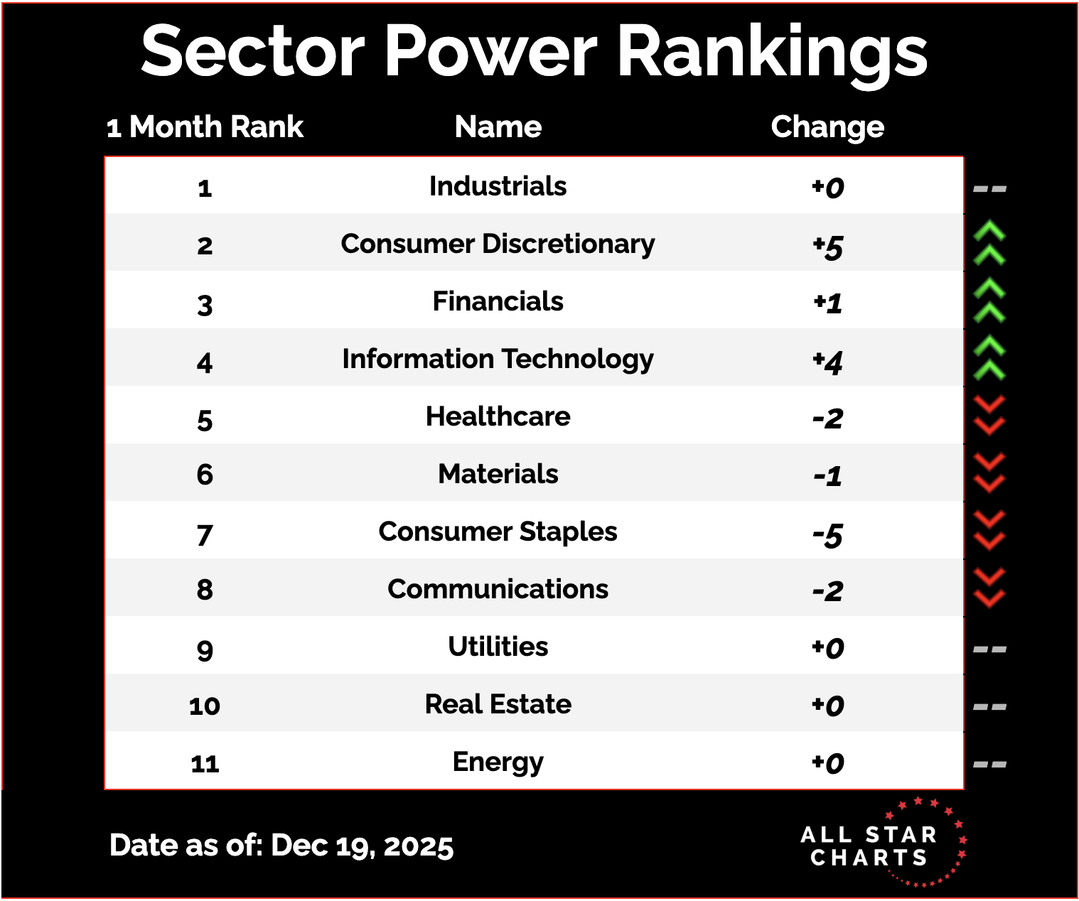 Today’s standout is Financials, which climbed one spot to break into the top three of our sector rankings.