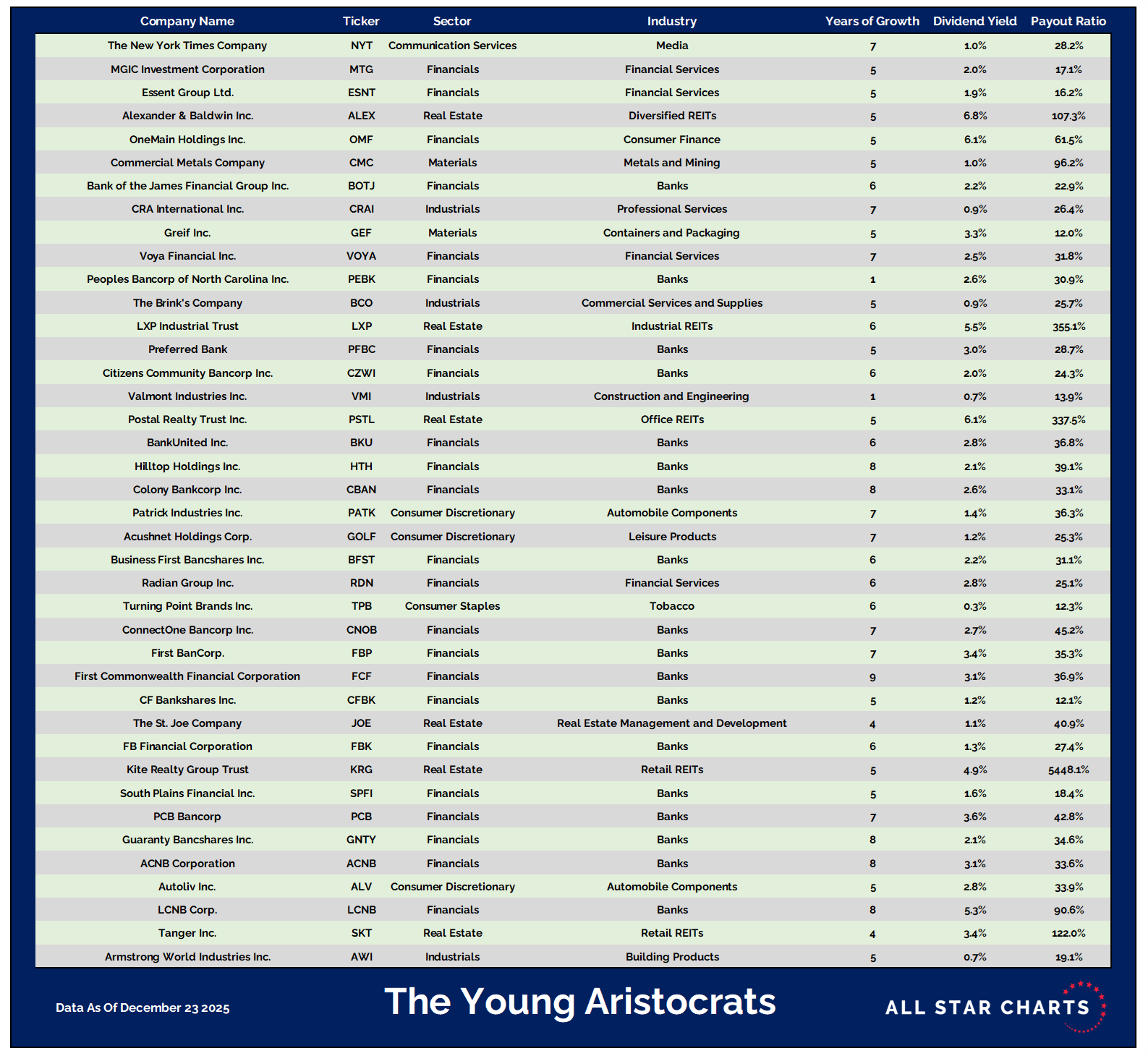 Here at All Star Charts, we like to stay ahead of the curve. That's why we're turning our attention to the future aristocrats. In an effort to seek out the next generation of the cream-of-the-crop dividend plays, we're curating a list of stocks that have raised their payouts every year for five to nine years.