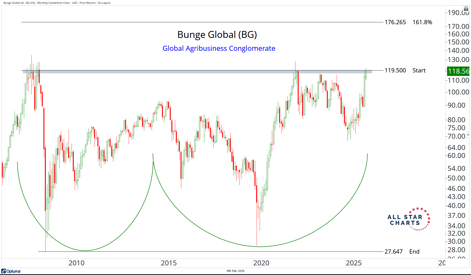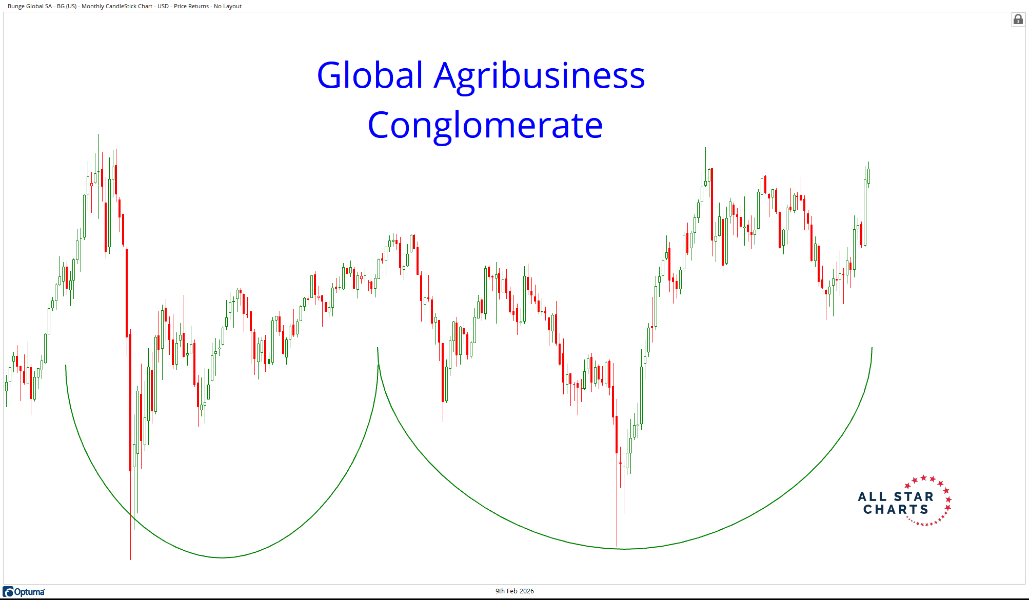 Bunge sits at the center of the global food supply chain, with exposure spanning grain origination, processing, logistics, and even biofuels. Not surprisingly, the stock tends to trade closely with the broader energy and inflation trade.