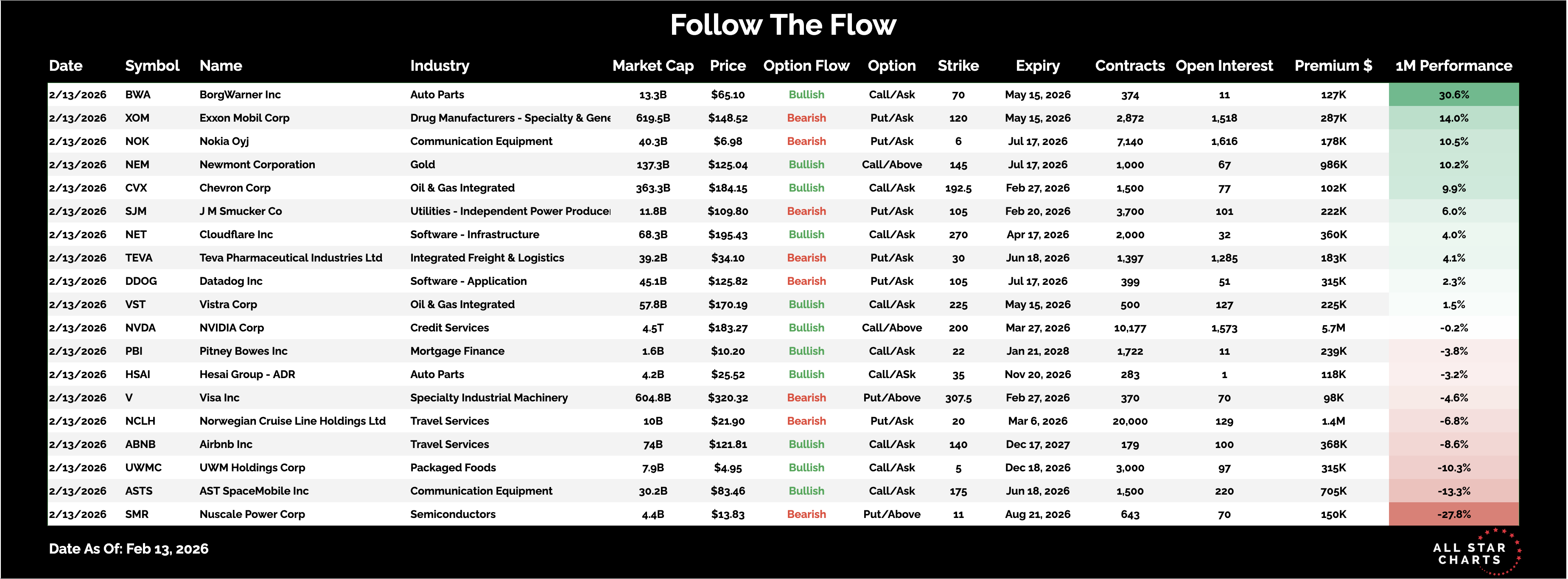 Here is the list of Unusual Options activity from February 13: