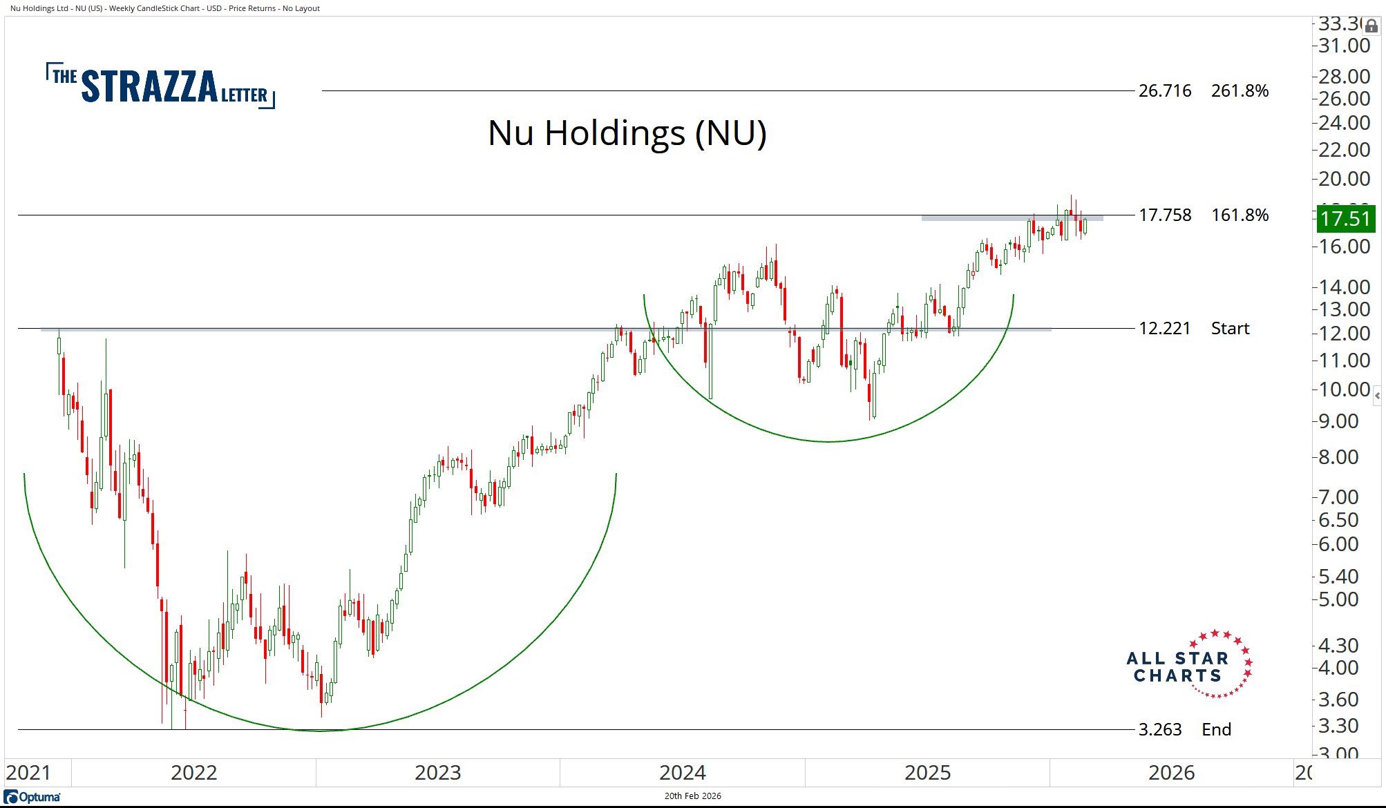 This first trade setup is a large-cap, but the rest are mid- and small-caps. Here’s the $88B digital banking giant, Nu Holdings $NU: