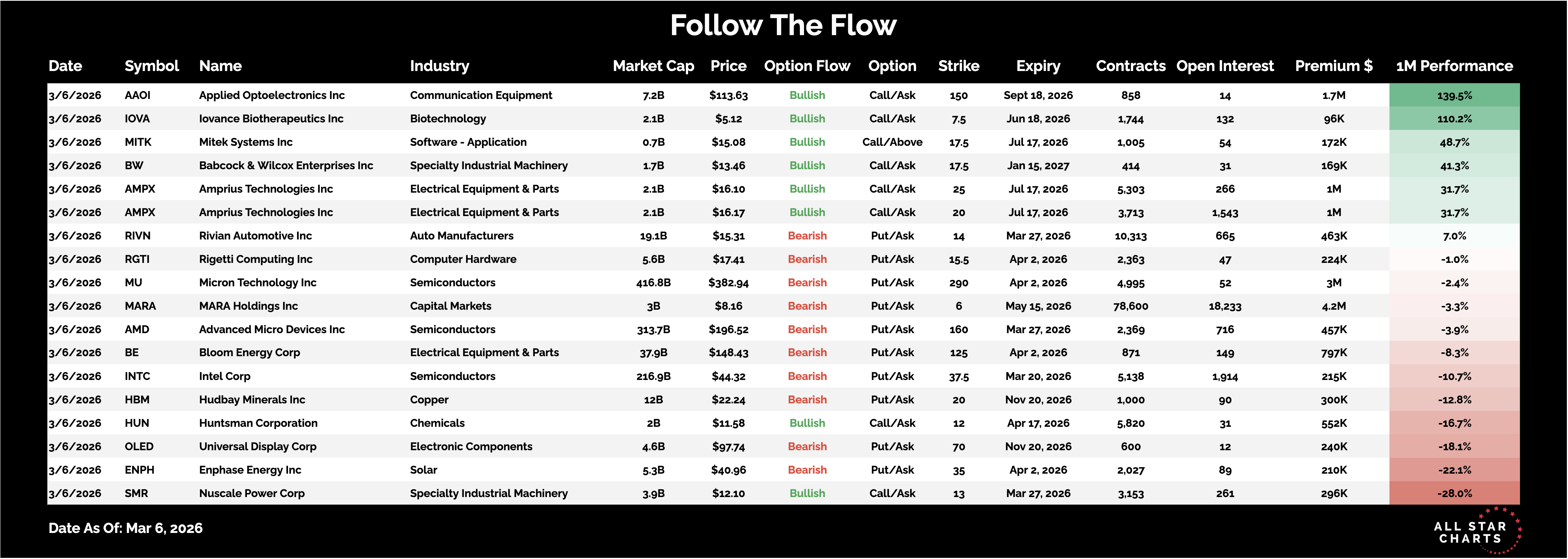 Here is the list of Unusual Options activity from March 6: