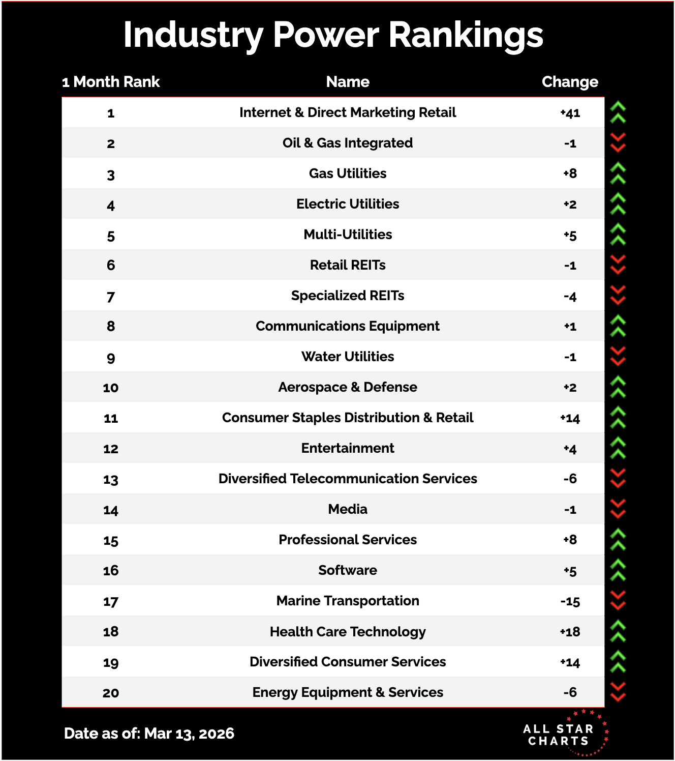 Here’s a peek at our overall industry rankings, which shows Oil & Gas Integrated falling a spot but still remaining firmly in 2nd place.
