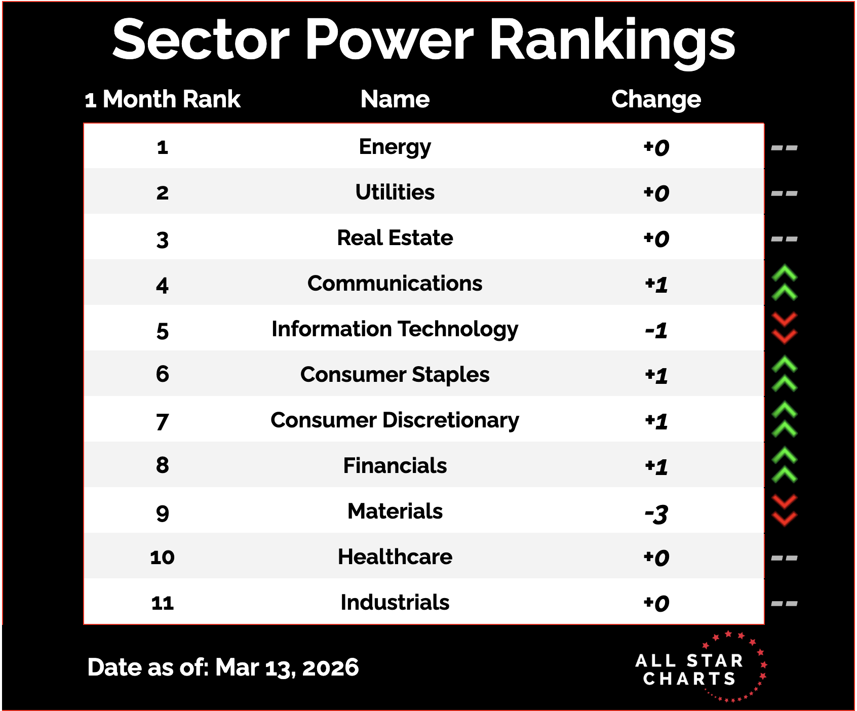 Today’s standout is Energy, still maintaining the top spot on our sector rankings.