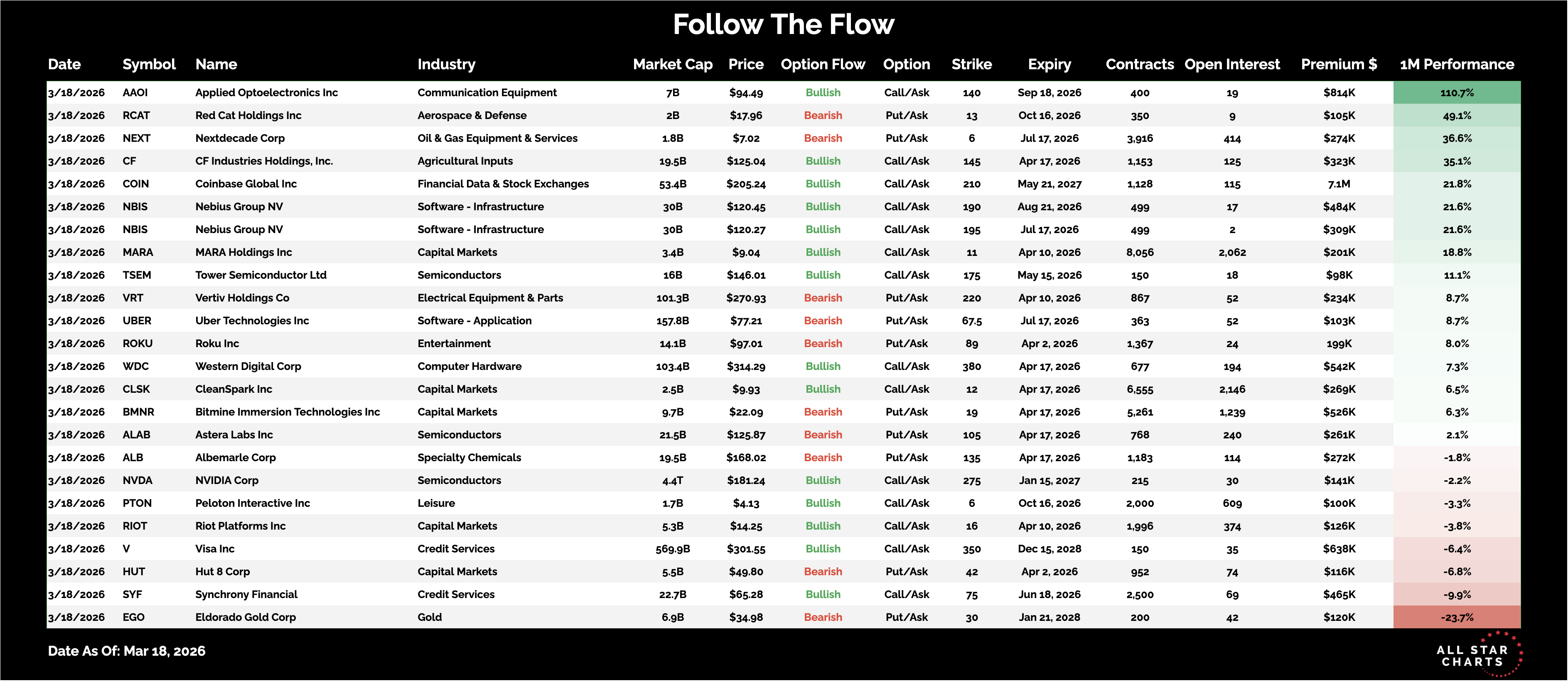 Here is the list of Unusual Options activity from March 18: