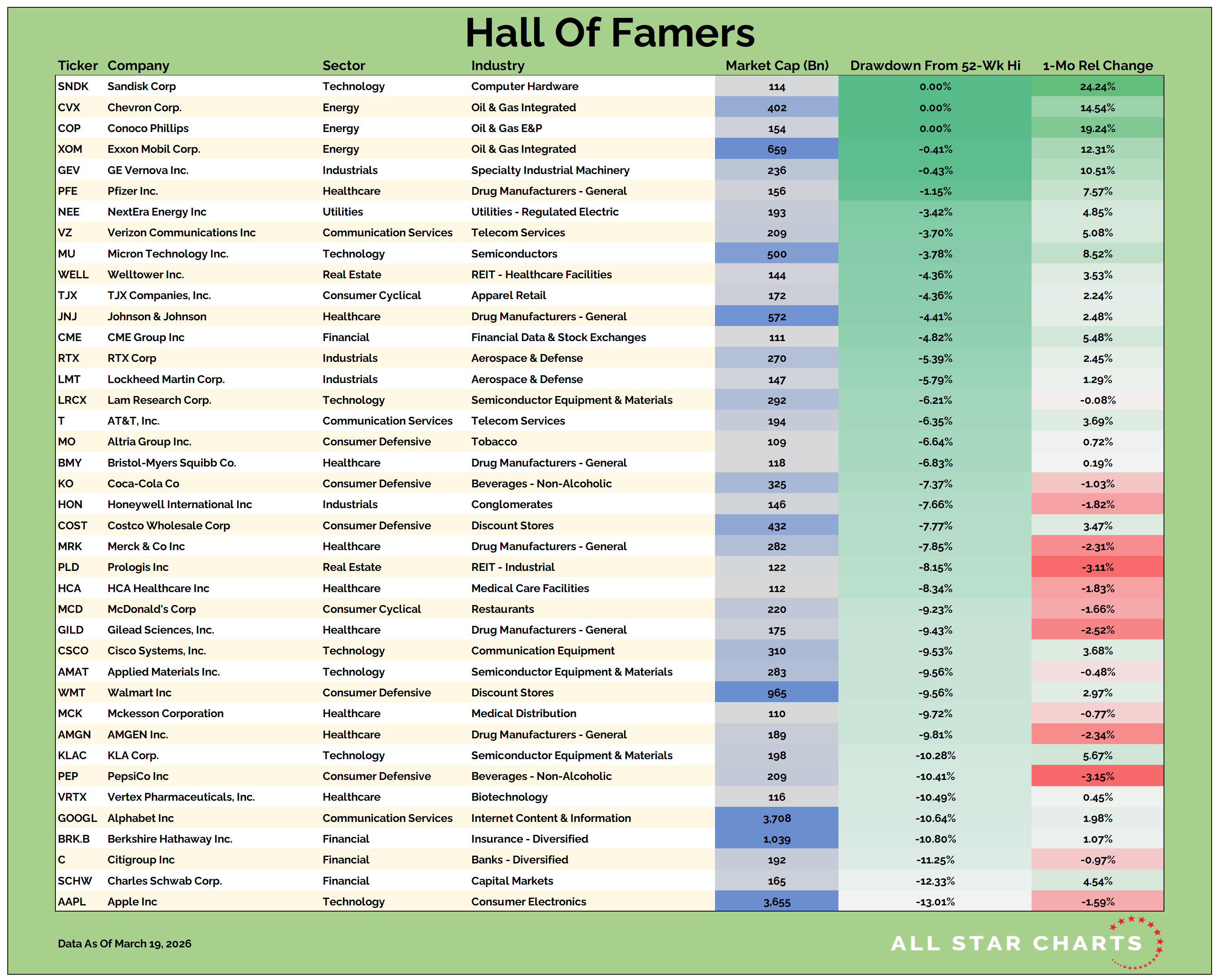 Our Hall of Famers list is composed of the 150 largest US-based stocks.