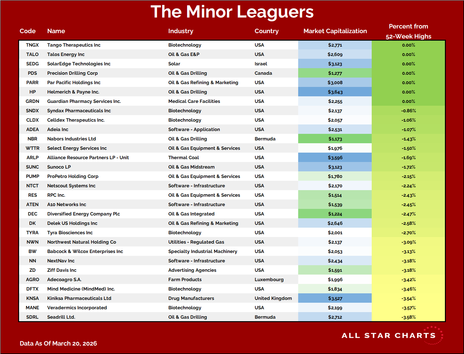 Nowadays, to make the cut for our Minor Leaguers list, a company must have a market cap between $1 and $4B.