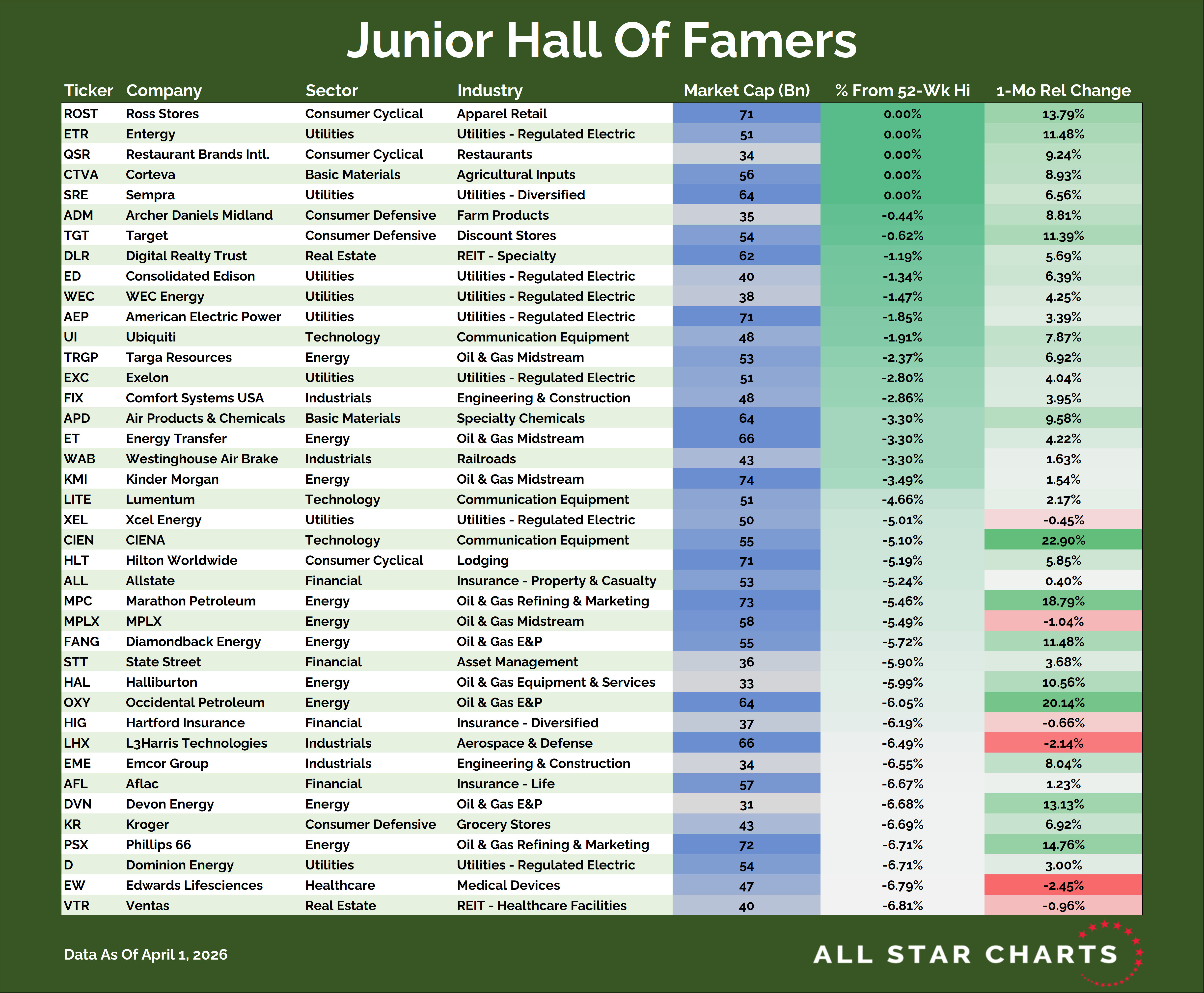 This scan is composed of the next 150 largest stocks by market cap, those that come after the top 150 and are thus covered by the Hall of Famers universe. Many of these names will someday graduate and join our original Hall Of Famers list. The idea here is to catch these big trends as early on as possible.