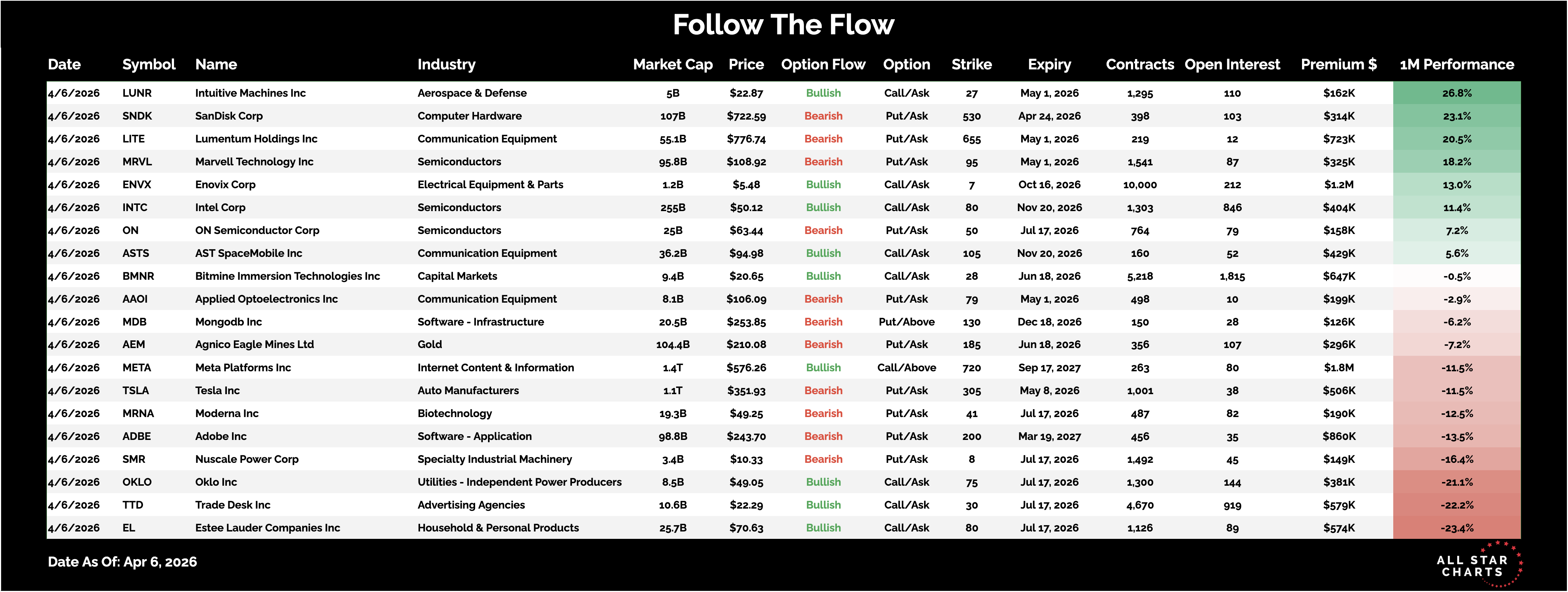 Here is the list of Unusual Options activity from April 6: