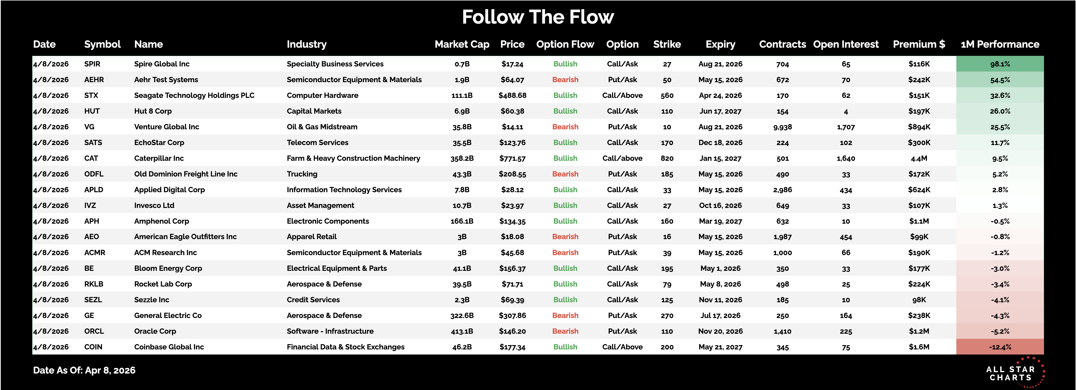 Big Flow in HUT, a Bullish Sweep in CAT, and SPIR Takes Flight