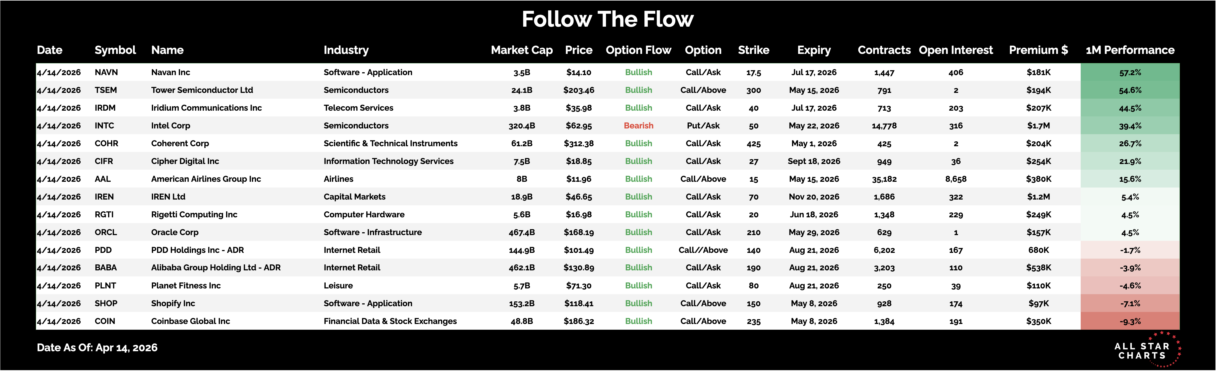 Here is the list of Unusual Options activity from April 14: