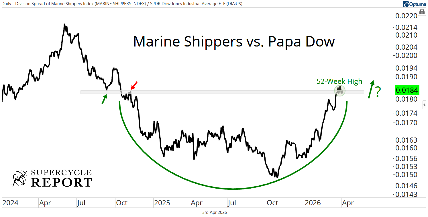 You can see this clearly when you look at our Marine Shippers Index relative to the Dow Jones Industrials.